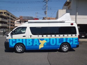 千葉県警察では、安全な県民生活の確保と地域の防犯力を強化するため移動交番車を配備して活動を行っています。